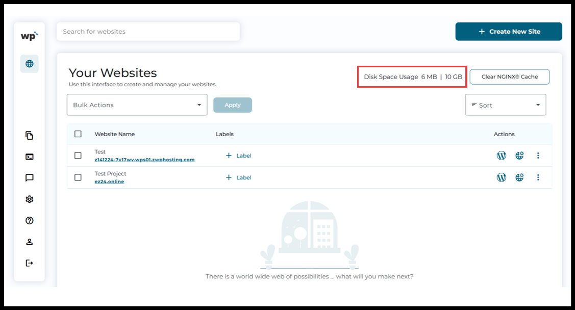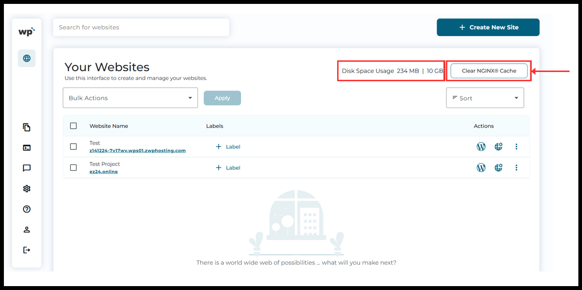 5. Now, the WordPress Squared Panel will see and click on the “Clear NGINX® Cache” button from right side.