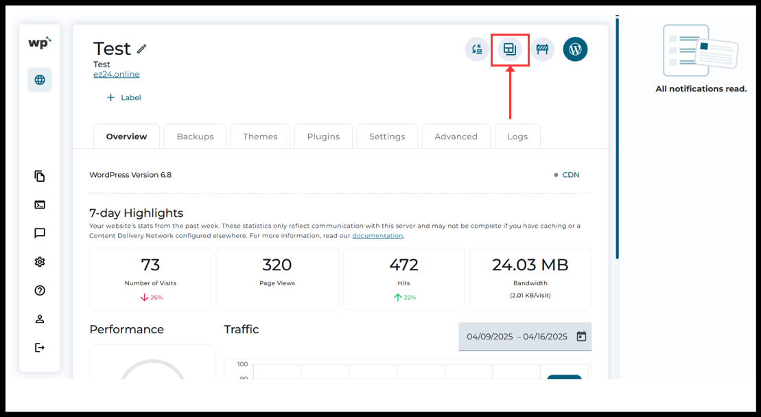 8. Now you will see the website has been successfully cloned to the new domain.