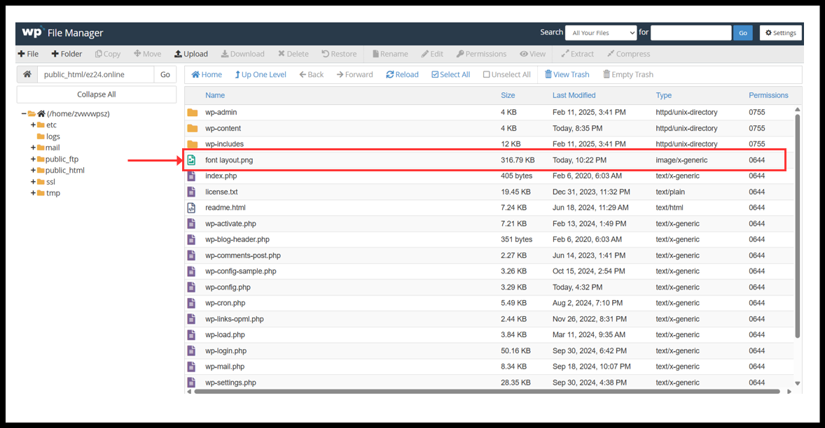 ၁၁။ ယခု File Manager အတွင်းတွင် အသစ်တင်ထားသော ဖိုင်ကို မြင်တွေ့ရပါလိမ့်မည်။