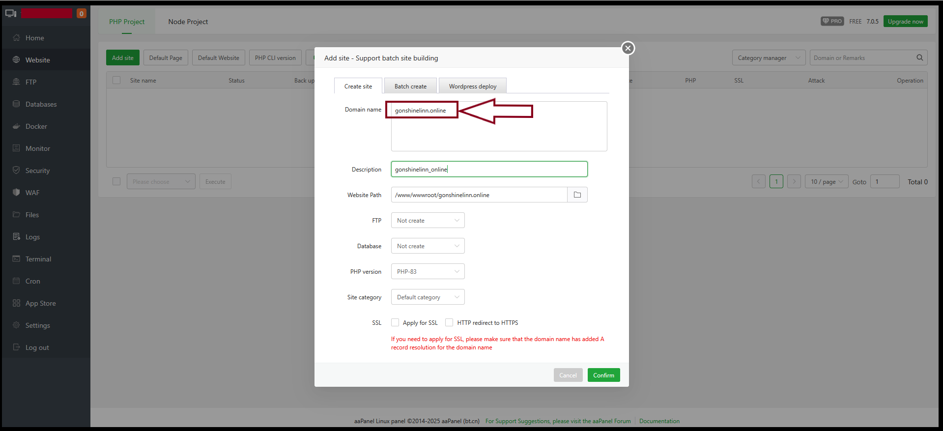PHP version : Select PHP version which version you want to use (minimum 7.4, maximum 8.3)