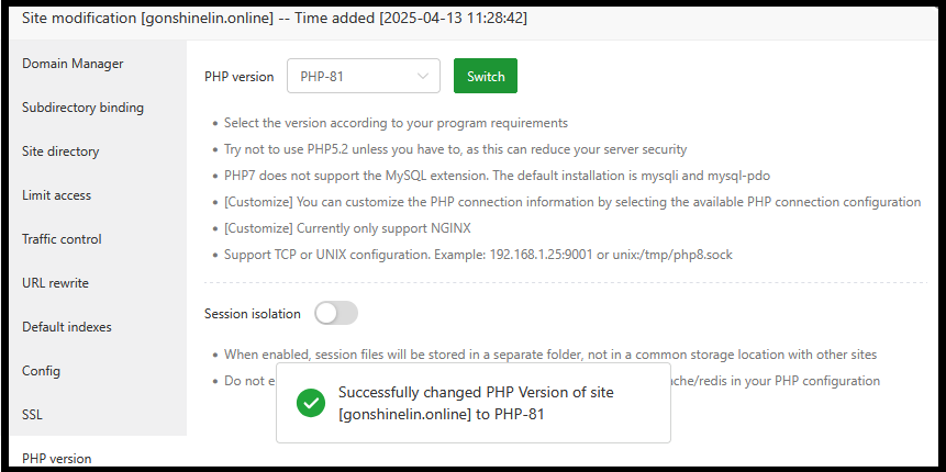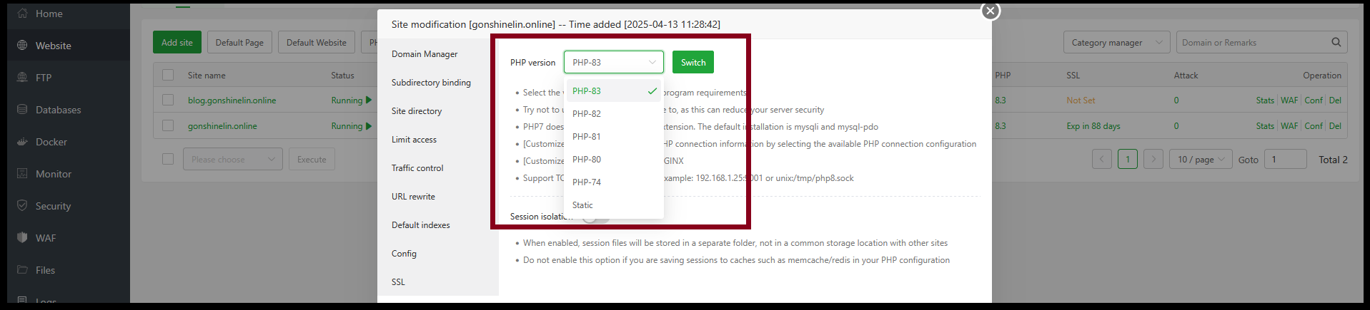 Step3. Select the desired version that you want to change. Then “Switch”.