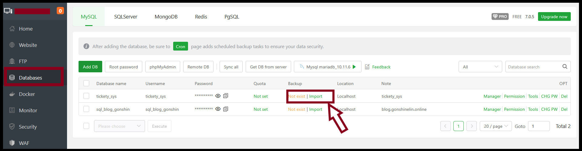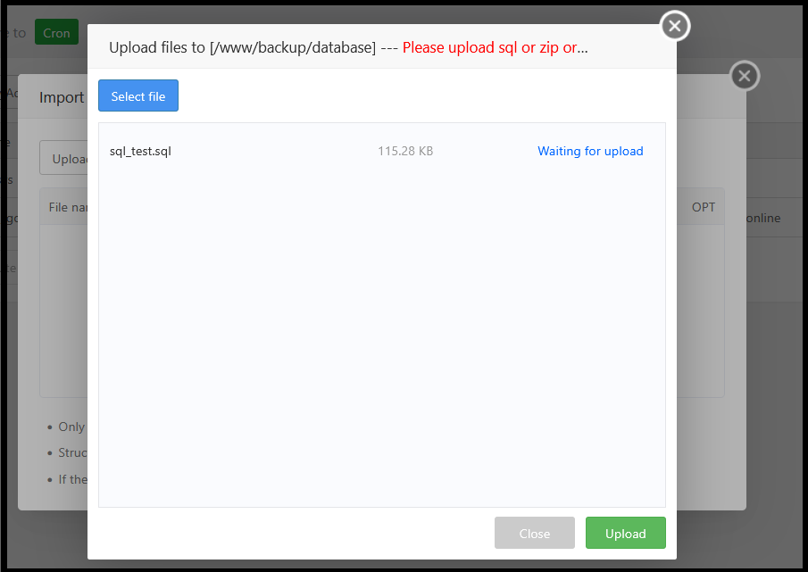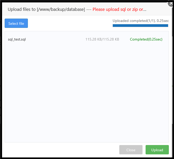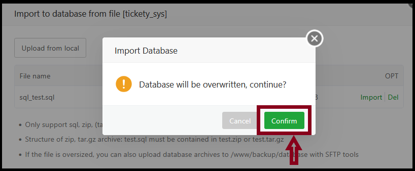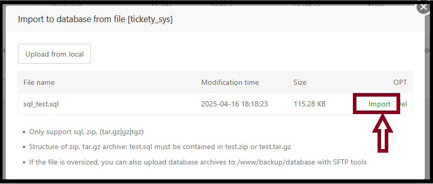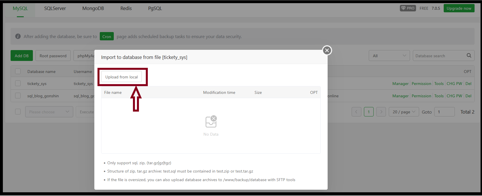 Step3. “Upload from local” to upload database files in backup or stored on your computer.