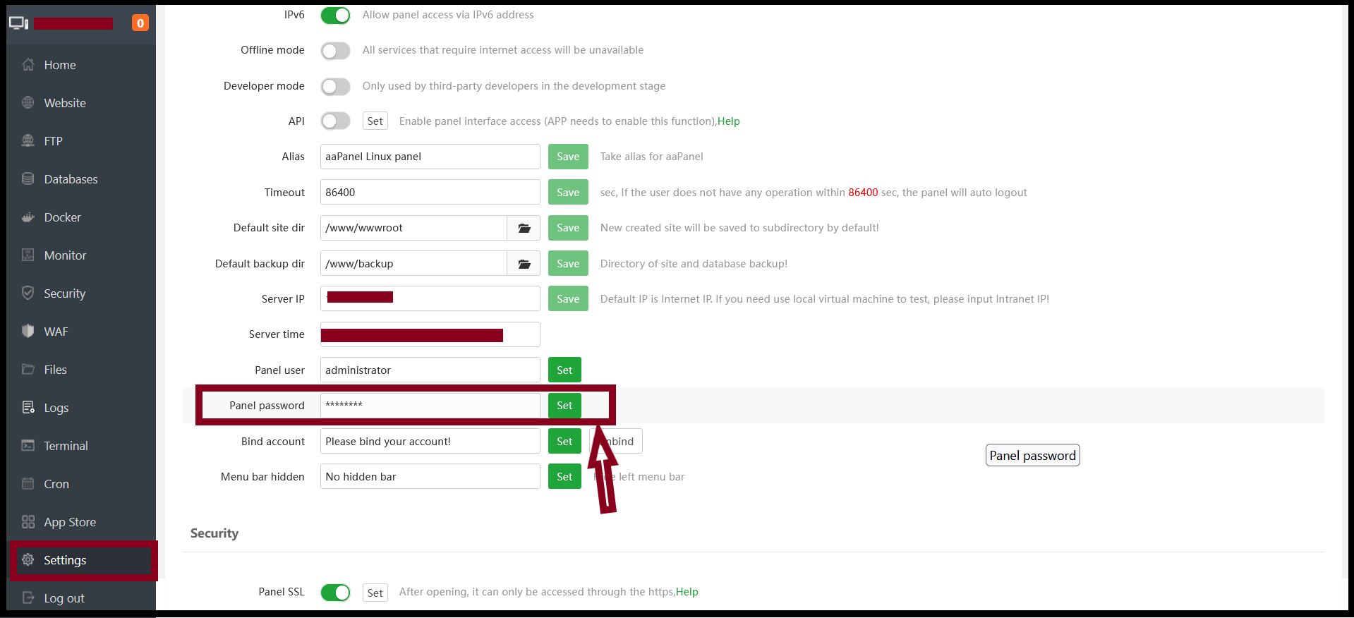 How to change Password from Private Hosting aaPanel dashboard?