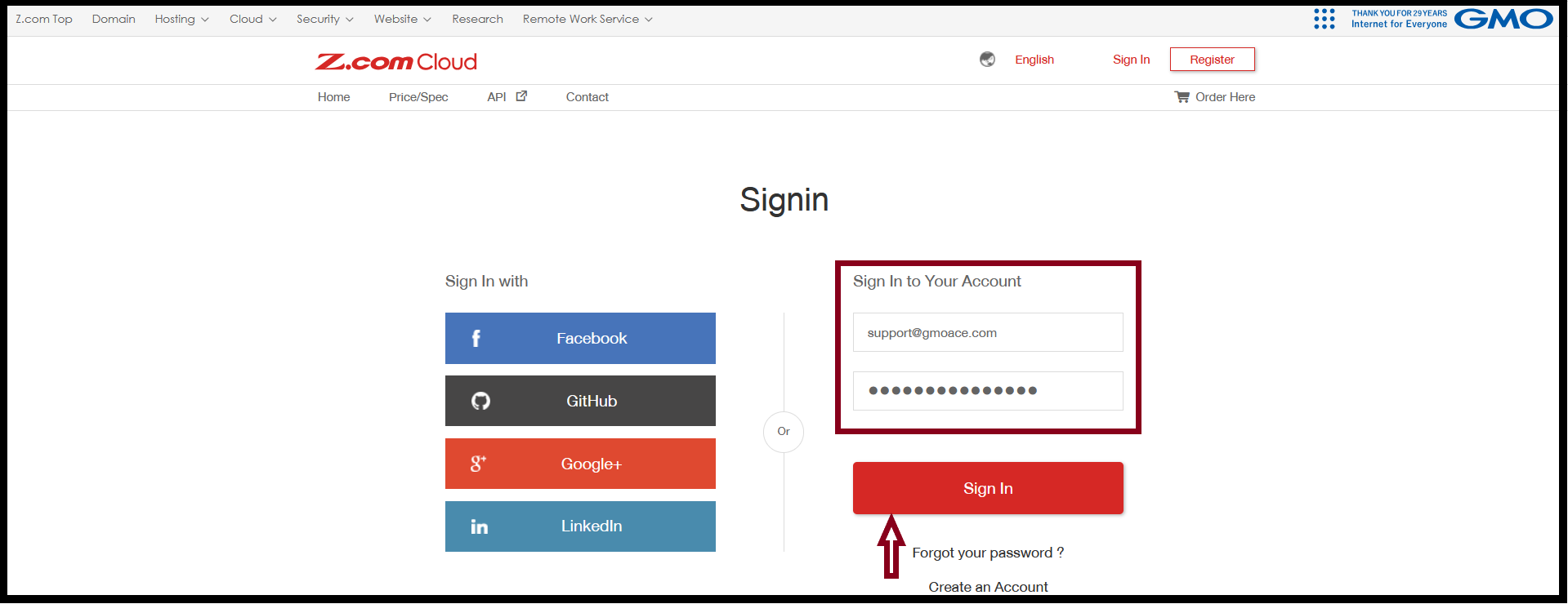 Step1. Login to the Z.com account with register email.