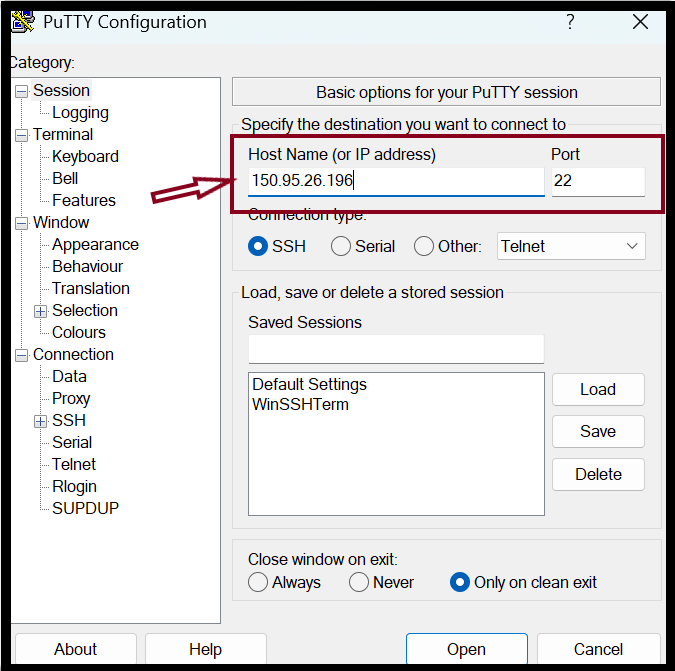 Step4. Open the putty program in your local PC. If you don't have the Putty program yet, you can download it first.