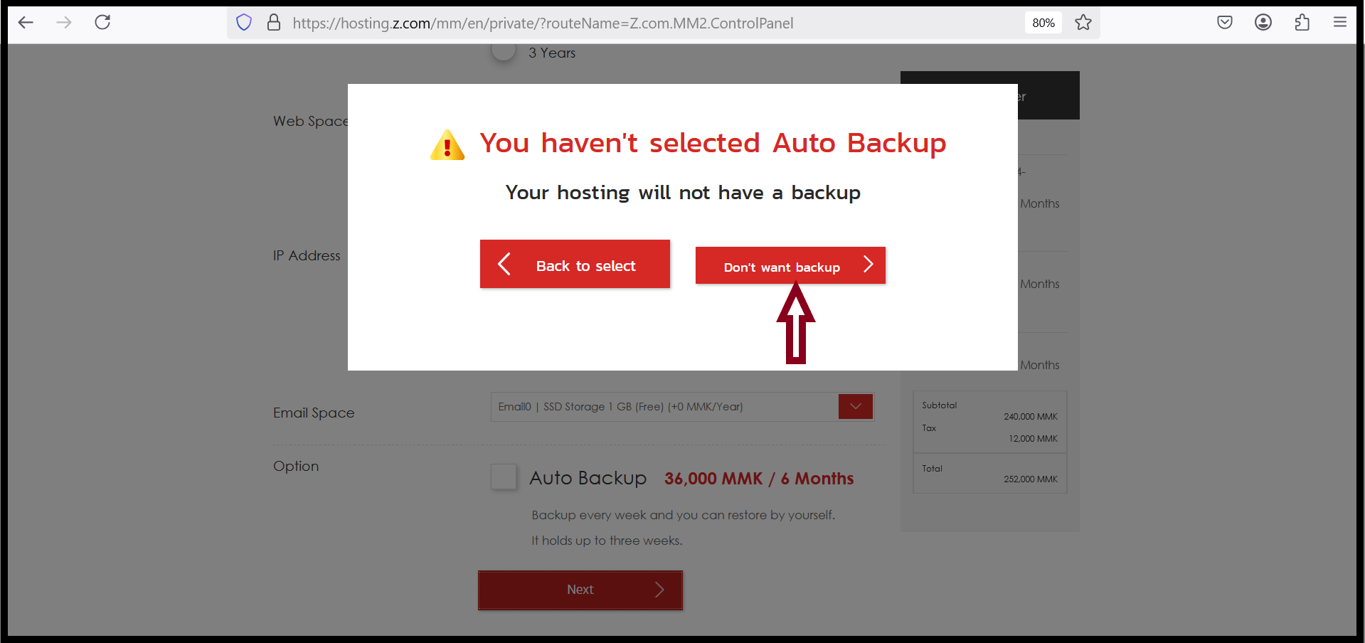For the AutoBackup service, you can use with optional extra charge. If you don’t want to use this auto backup service, don’t checkmark Option service.