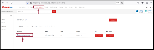 Step3. Click “Visit My Z.com”. Then go to “Private Hosting Tab”. And then, Click “Server Default Setting” Under Name Tag.