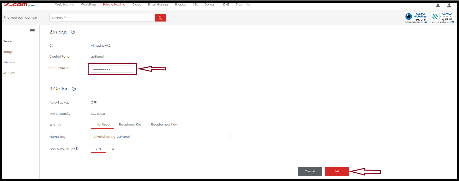 Then, Click “Set. If the password setup process is finished, you need to wait around 2hours for the server building process.
