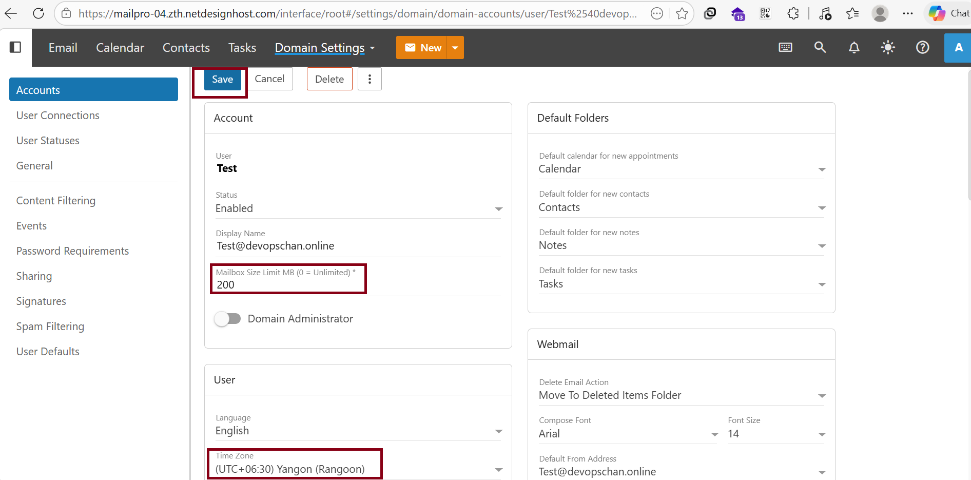 Enter Test in the Username field (for example: Test@devopschan.online).