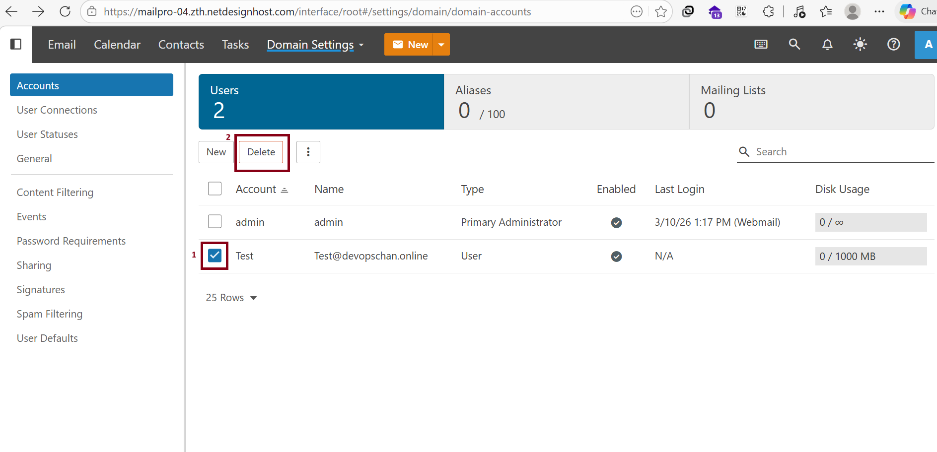 Please Note : Once an account is deleted, all associated Mail Data cannot be recovered.