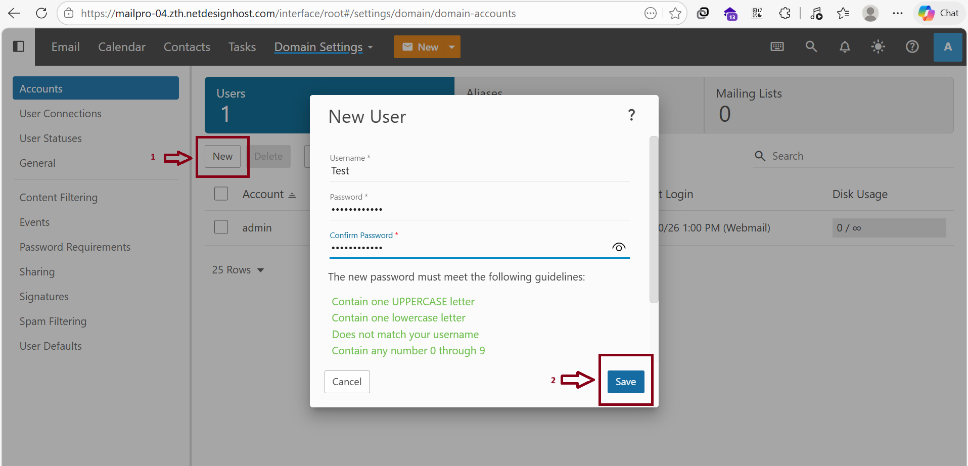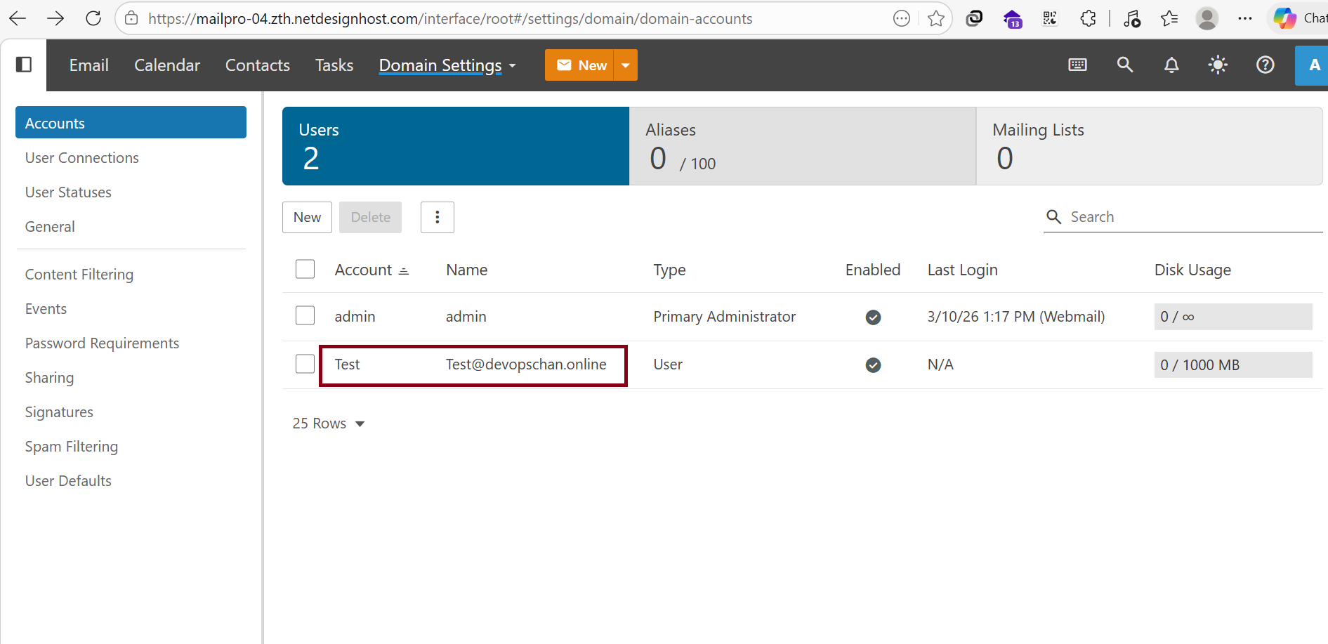 Enter Test in the Username field (for example: Test@devopschan.online).