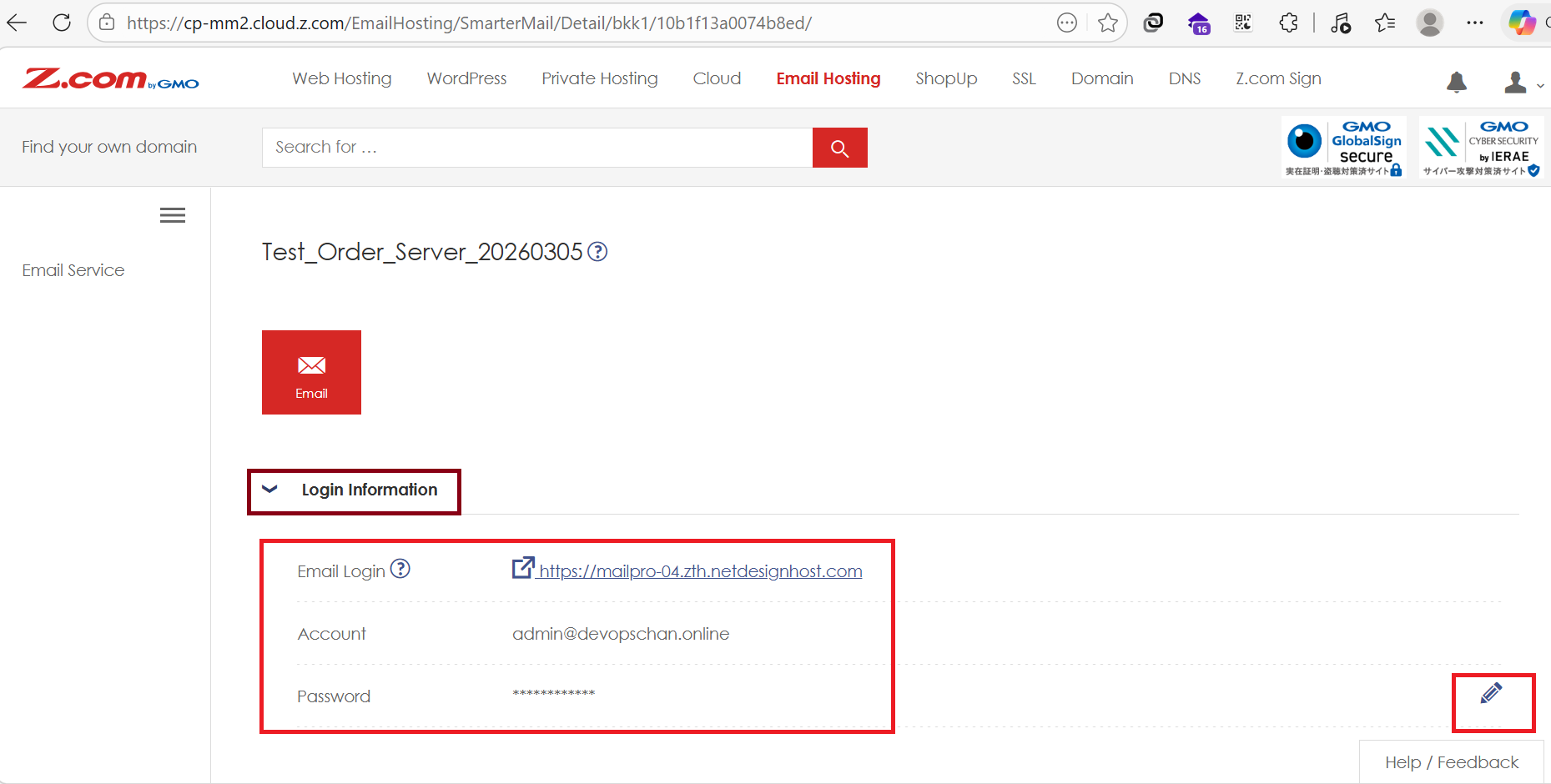 - Click the “Email Hosting” Menu