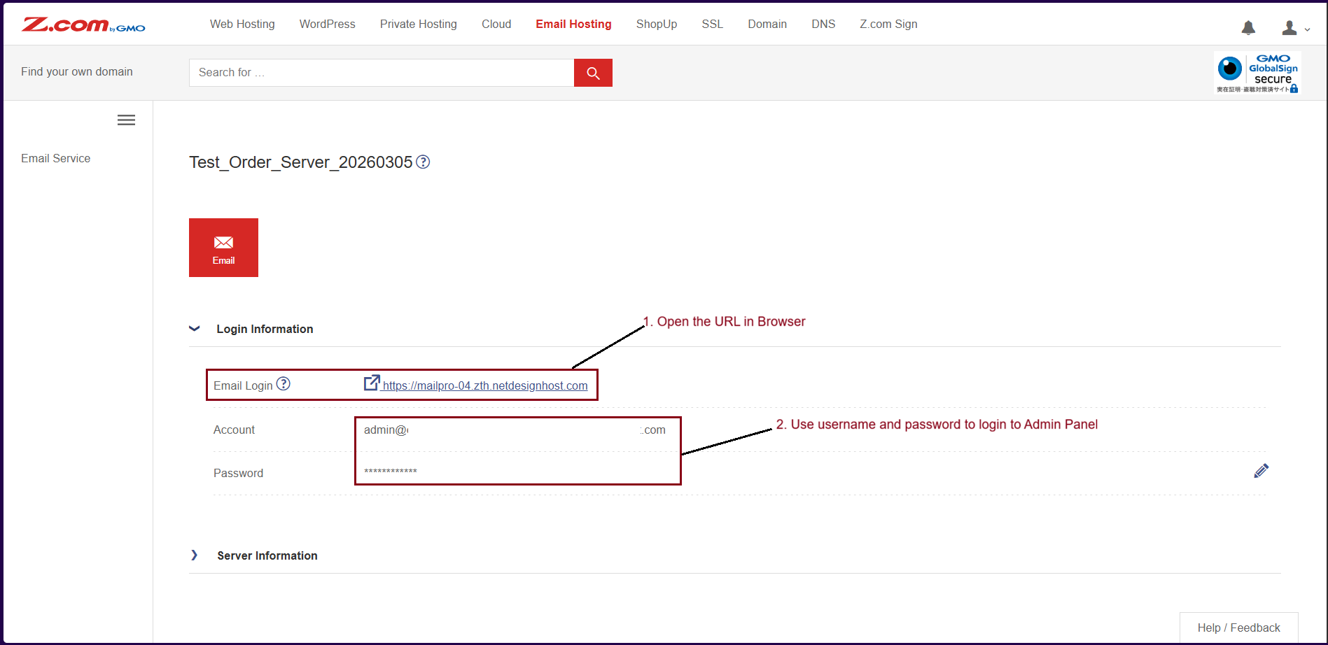 - မေးလ်ဆာဗာများကို Z.com System မှသတ်မှတ်ပေးသော URL မှဝင်ရောက်ခြင်း။ (https://mailpro-01.zth.netdesignhost.com, https://mailpro-04.zth.netdeisgnhost.com, ...)