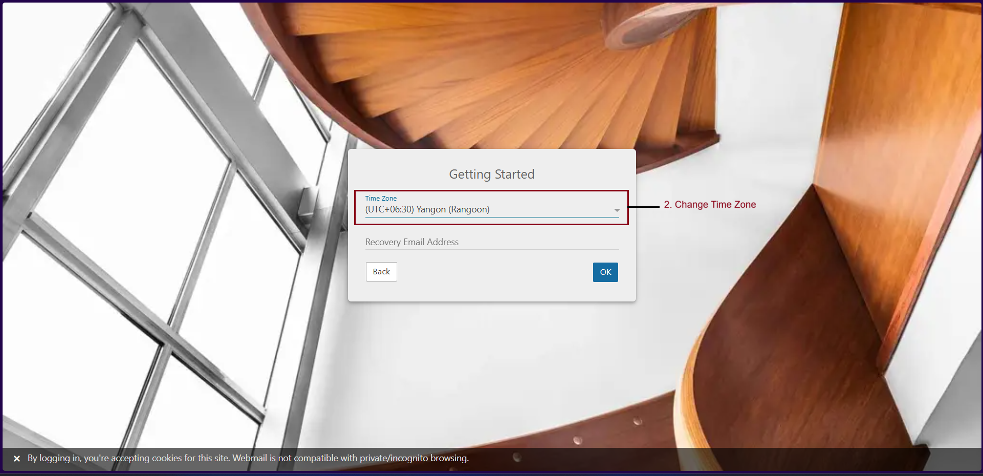 မေးလ်အကောင့်သို့ ဝင်ရောက်စဉ်ဝင်တွင် Time Zone ပြောင်းလဲ အသုံးပြုနိုင်ပါတယ်။